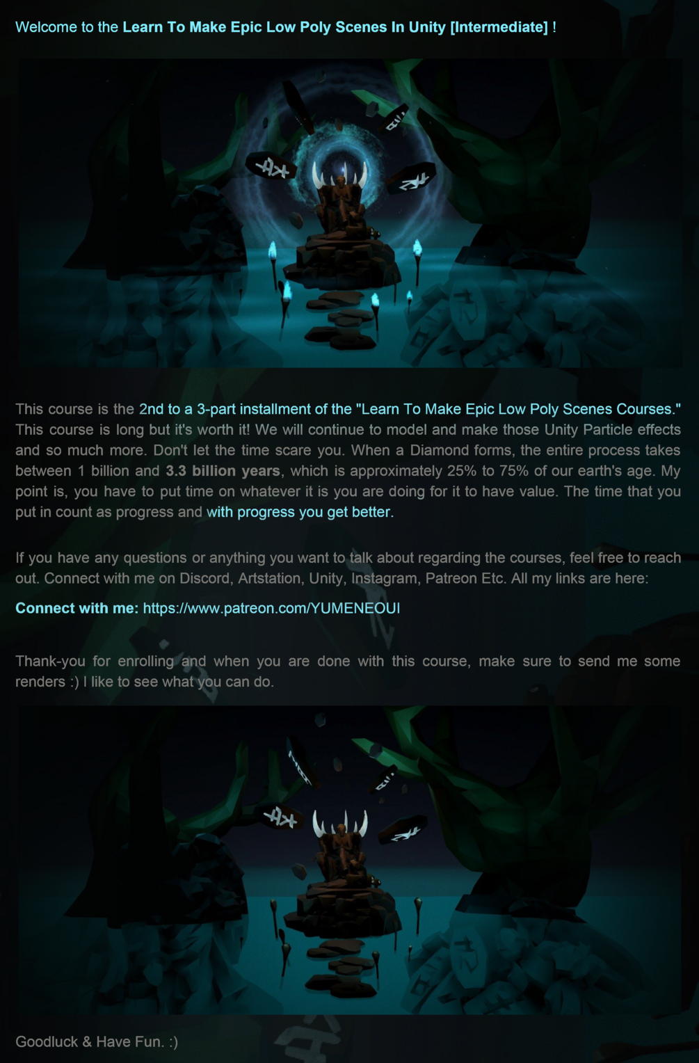 If you have any questions or anything you want to talk about regarding the courses, feel free to reach out. Connect with me on Discord, Youtube, Patreon, Artstation, Unity, Instagram Etc. All the links, tutorial playlist and everything you will need will be on Patreon: